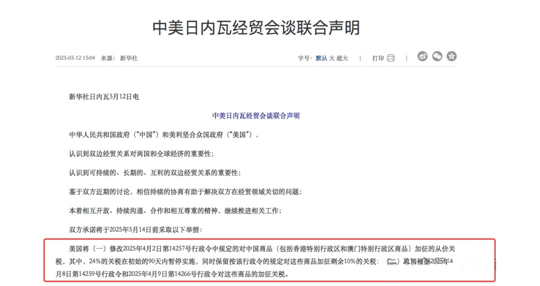 历经一个多月的博弈,瑞士当地时间5月12日上午9:00,双方发布《中美日内瓦经贸会谈联合声明》。